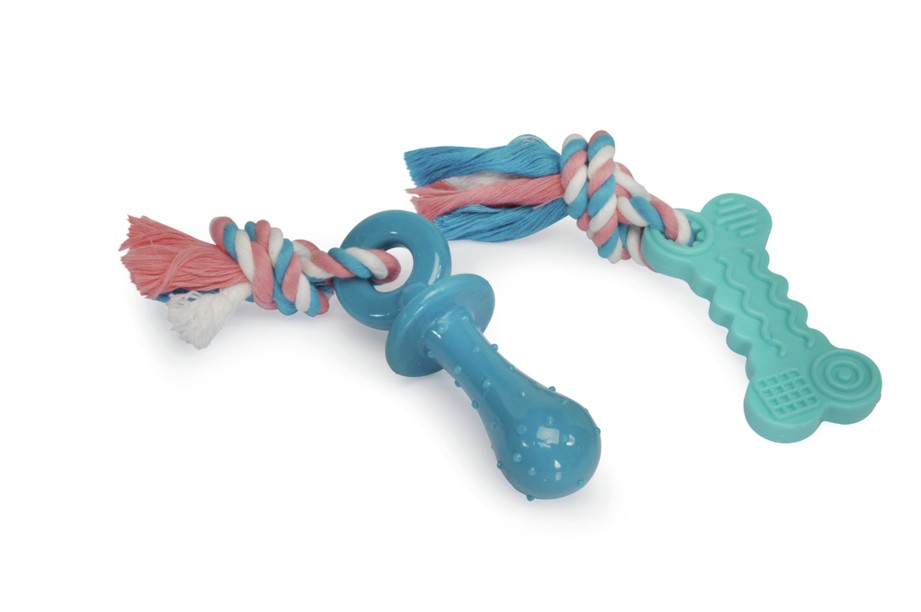 TPE pacifier and bone with rope 10cm . Loder per qen