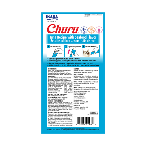 Churu tuna recipe with seadfood flavour. Shpërblime të lëngshme për mace