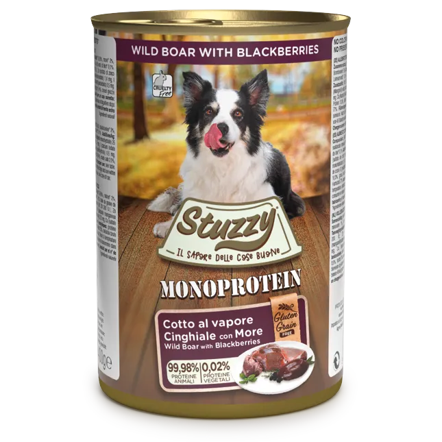Stuzzy Wild Boar & Blackberries.Ushqim i lëngëshëm për qe, me derr të egër dhe boronicë 400gr