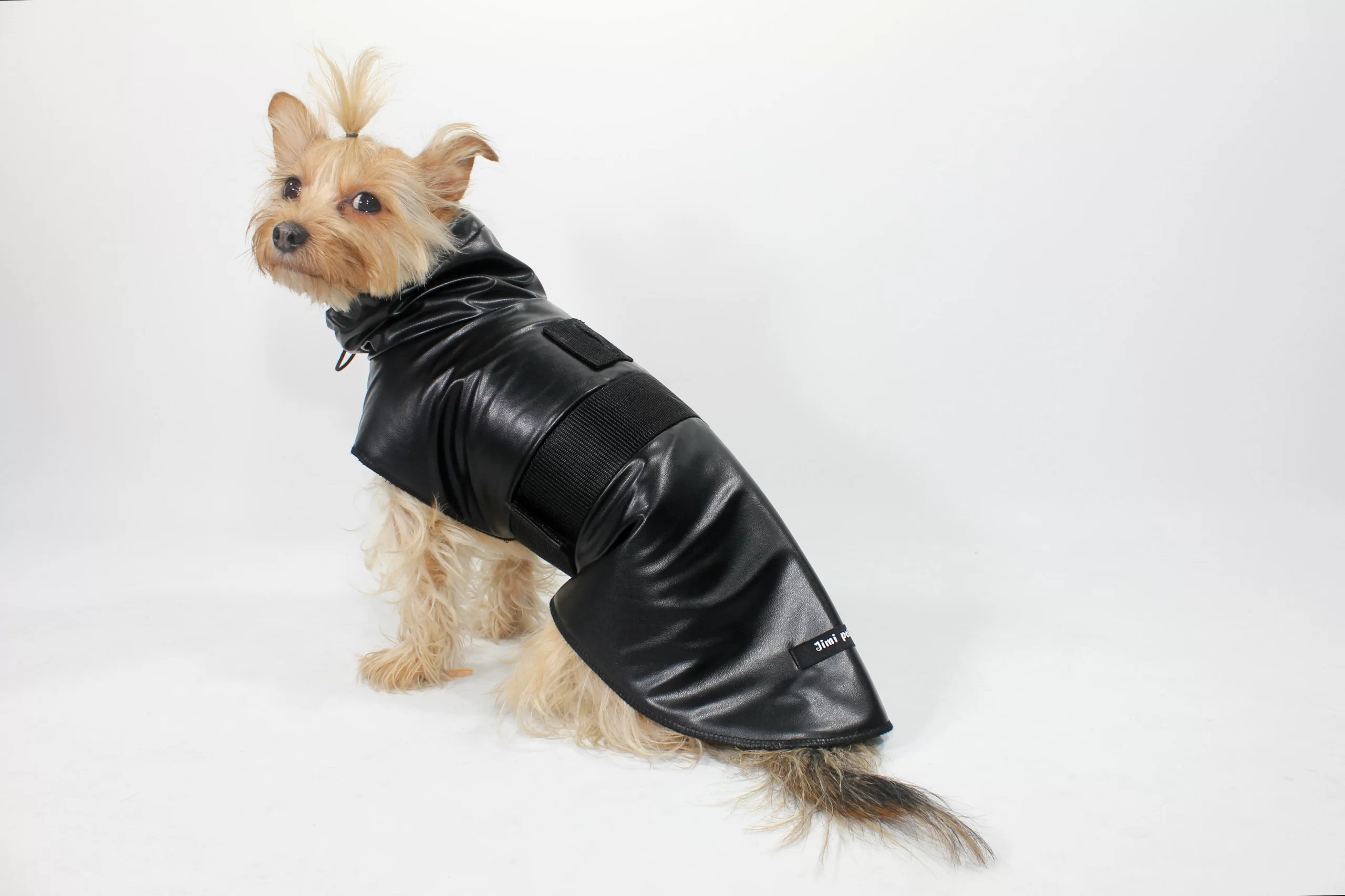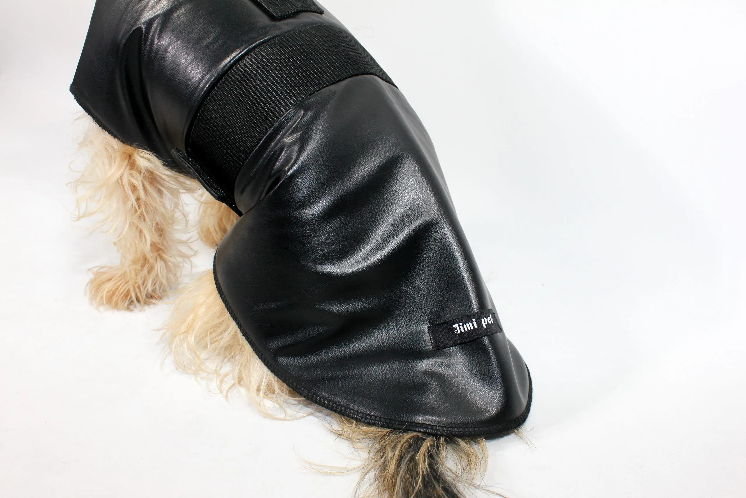 Made of faux leather. Pet raincoat with soft sponge lining, belt, elastic neck, buttonhole for leash. Complete your pet’s style with easy on and off feature! Not the same as leash sizes! Please see images for size information!