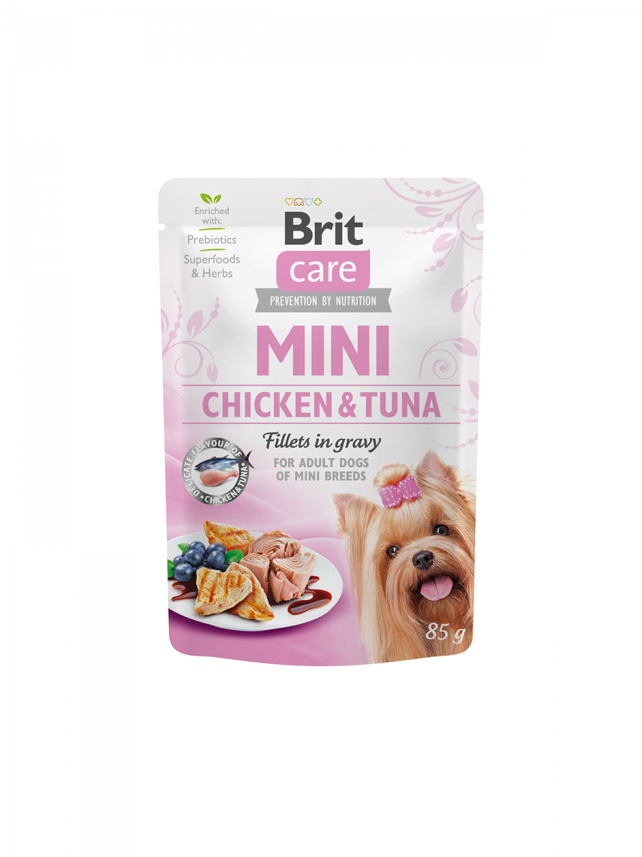 Brit Care Mini Chicken & Tuna fillets in gravy 85gr. Ushqim i lëngshëm me pulë dhe tuna